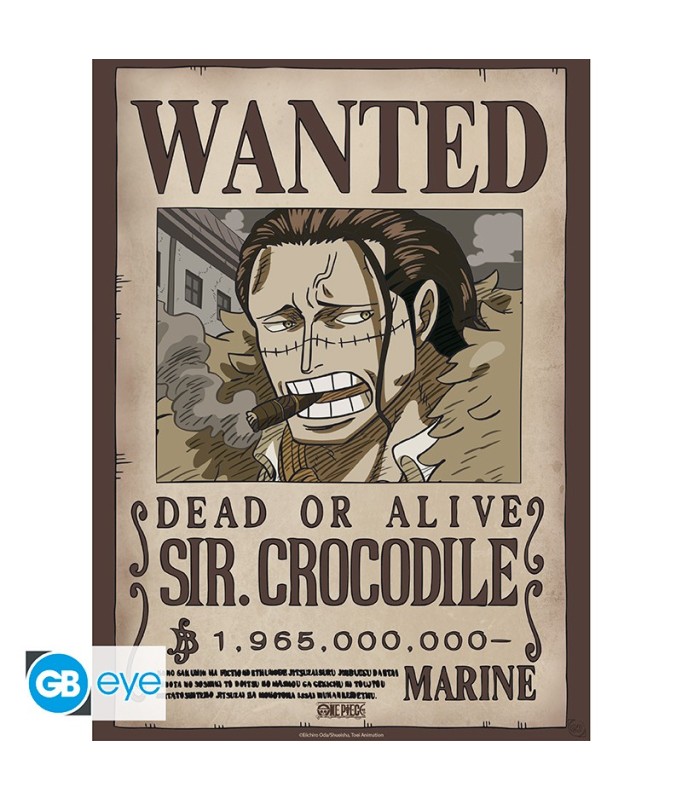 Après tous les événements de Wano, une nouvelle ère vient d'émerger. Des nouveaux empereurs des mers sont apparus, des alliances se sont formées... La mer n'a jamais été aussi agitée ! À la suite de toutes ces péripéties, Sir Crocodile atteint une prime de 1 965 000 000 de berrys sur ce poster One Piece par GB eye !