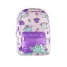 Sac à dos avec bandoulières réglables et pochette à l'avant.