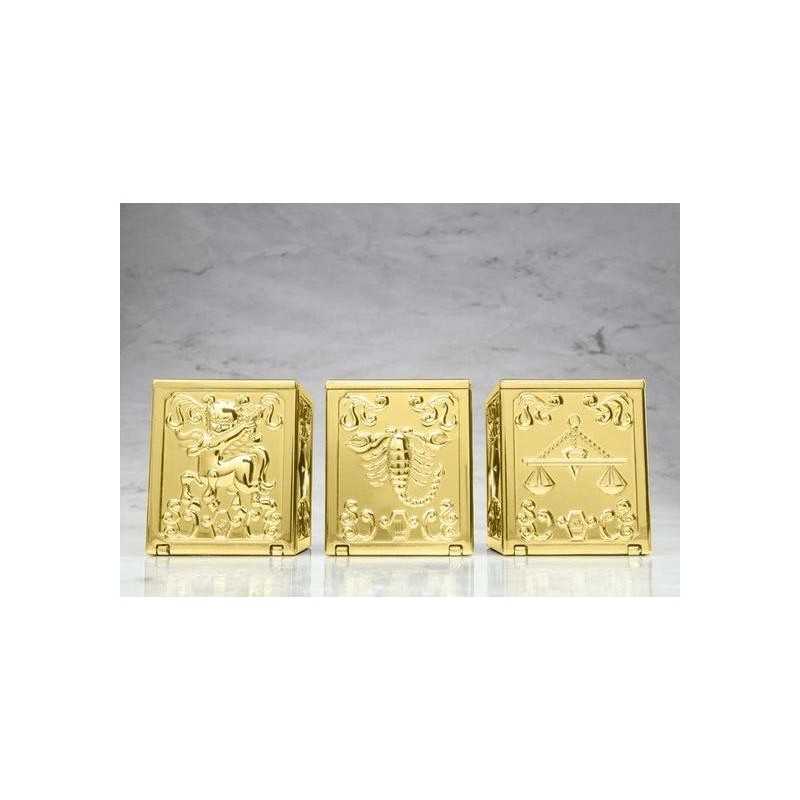 Pandora box en métal sous licence officielle Bandai, éditée en quantité très limitées, des armures de la Balance, du Scorpion et du Sagittaire.