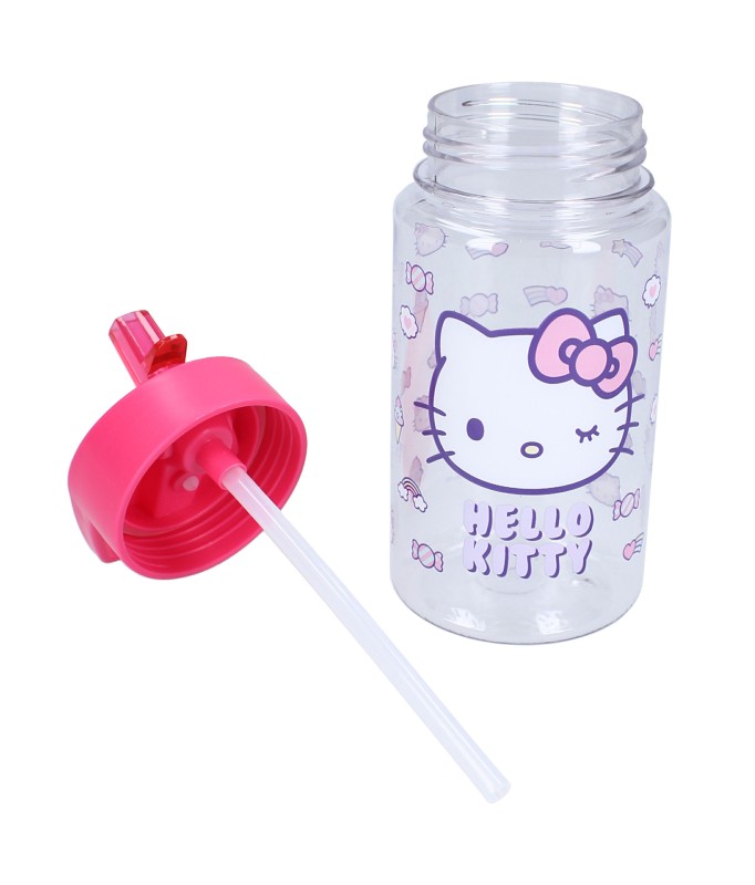Ce mignon gobelet Hello Kitty est idéal pour emporter des boissons en déplacement ou à l'école. Le gobelet est transparent avec une impression de Hello Kitty sur le devant. Le gobelet est parfait pour toutes les boissons et a une capacité de 450 ml. La paille intégrée permet de boire facilement dans le gobelet. De plus, le gobelet est facile à transporter grâce à la poignée rose située sur le dessus.