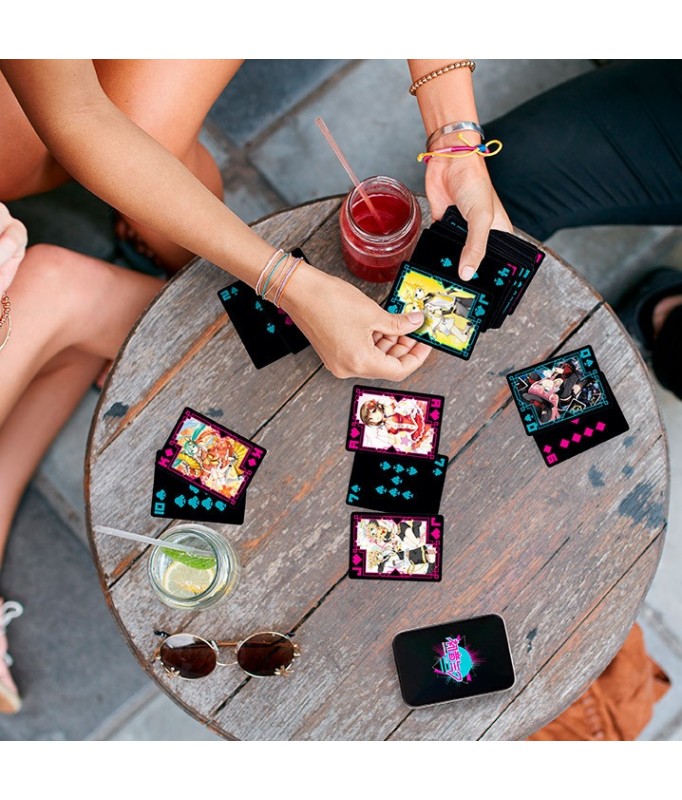 Avec ces cartes à jouer sous licence officielle, vous allez pouvoir passer du temps avec Miku et tous ses amis ! Chaque carte a un dessin unique représentant les idoles de la musique Piapro. Le jeu de 54 cartes comprend 2 cartes joker et est présenté dans une boîte en métal de qualité supérieure.