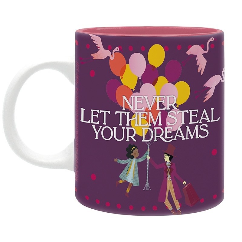 Cette jolie phase de Willy Wonka " Ne les laisse jamais voler tes rêves " rendra vos matins plus doux grâce à ce joli mug Wonka.