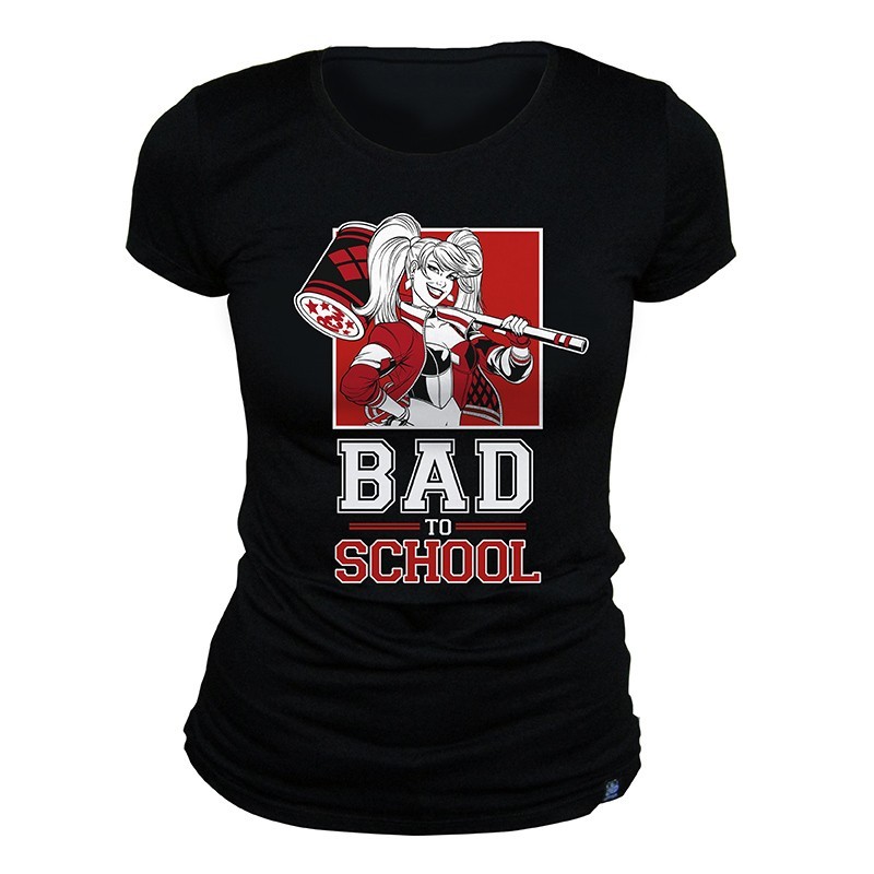 Tshirt noir femme Harley Quinn - "BAD TO SCHOOL"