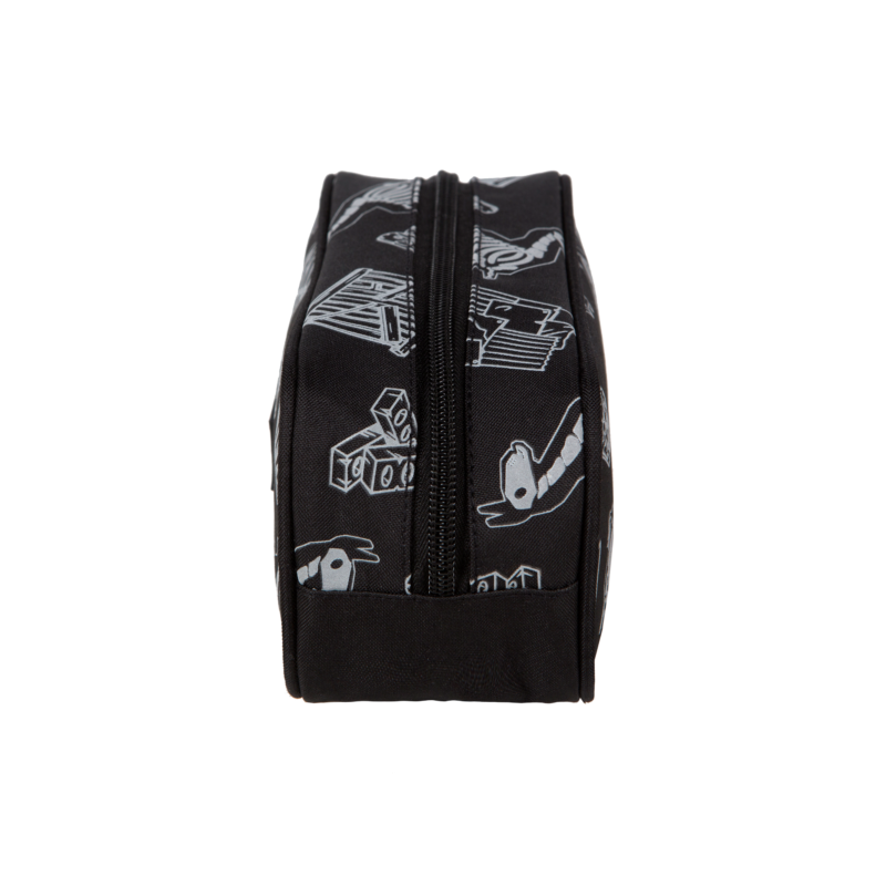 Trousse avec un seul compartiment et une fermeture à glissière.