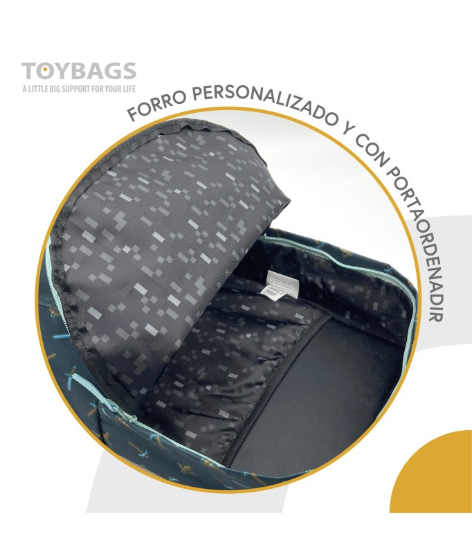 Sac à dos américain Pica Pica de Minecraft. Doublure intérieure. Compartiment pour ordinateur portable. Intérieur entièrement doublé et personnalisé. Rembourrage dorsal rembourré. Bretelles ergonomiques, réglables et rembourrées. Finitions et fermetures éclair de haute qualité. Bonne sensation tactile. Matériau croisé en polyester durable et respirant. Robuste, spacieux et organisé.
