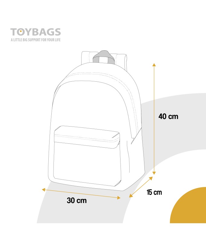 Sac à dos avec bandoulières réglables et pochette à l'avant.