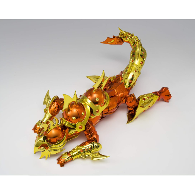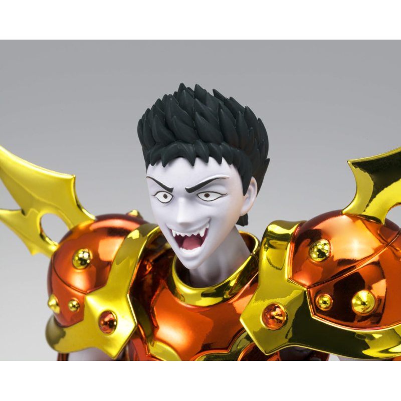 Figurine sous licence Saint Seiya de type Myth Cloth EX, avec corps en plastique totalement articulé et armure en très grande partie en métal, adaptable sur le porte armure (aussi appelé "Object" ou "Socle"), livré avec la figurine.