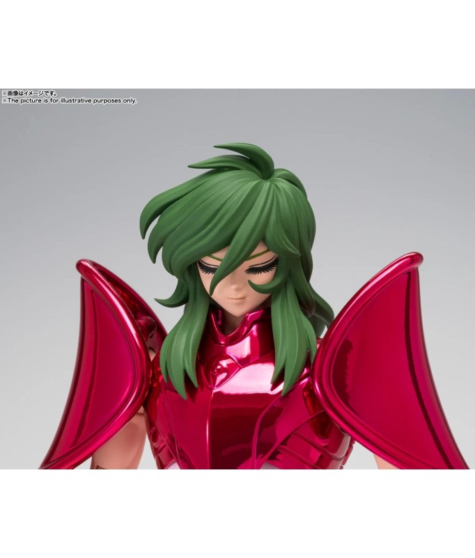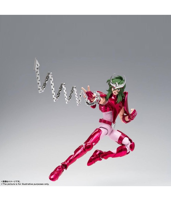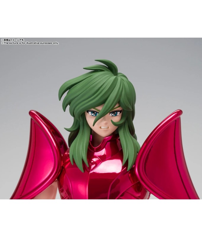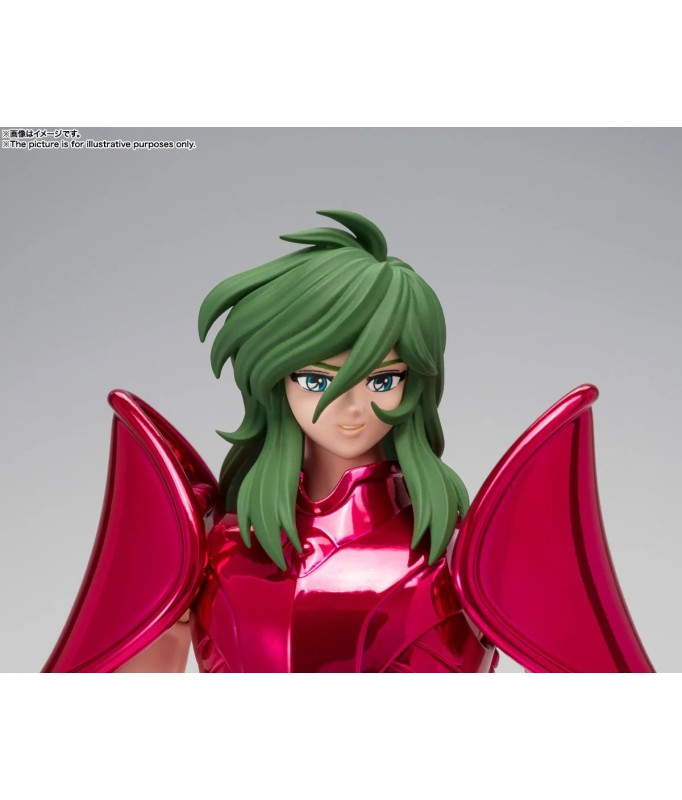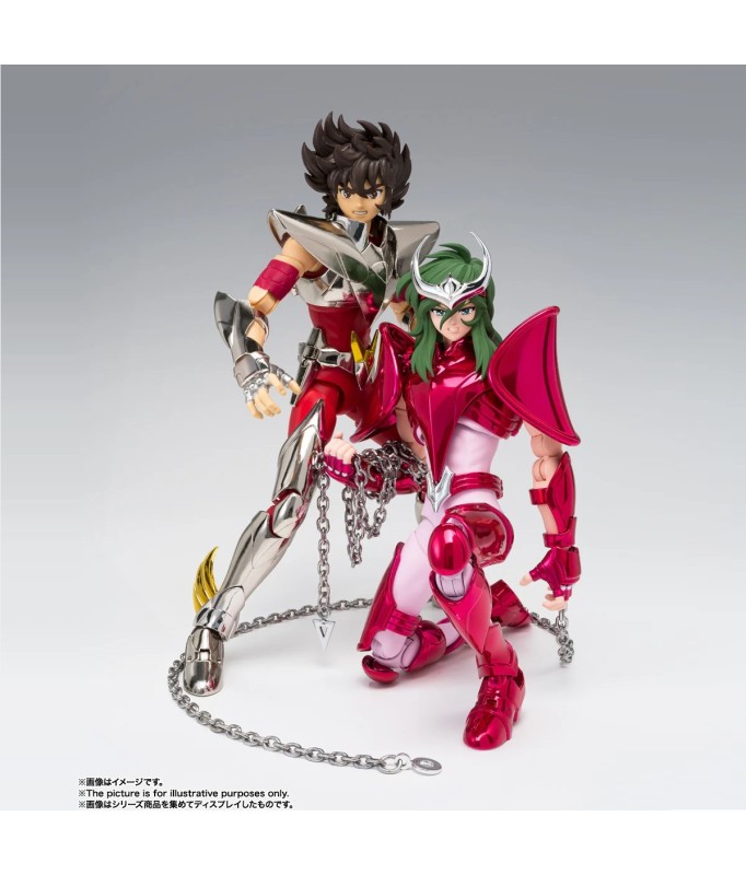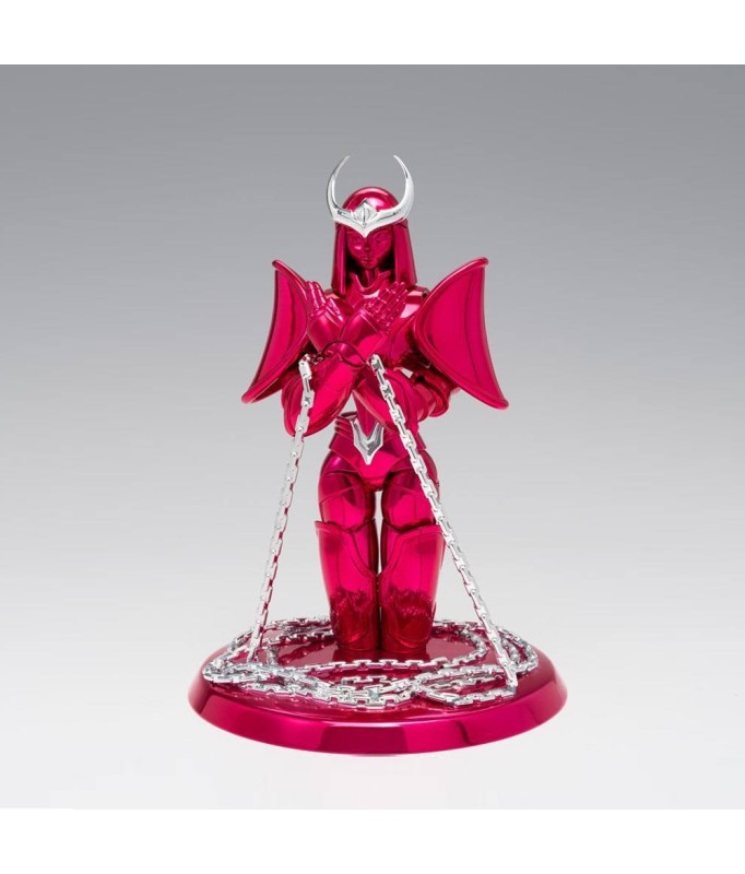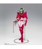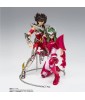 Figurine sous licence Saint Seiya de type Myth Cloth EX, avec corps en plastique totalement articulé et armure en très grande partie en métal, adaptable sur le porte armure (aussi appelé "Object" ou "Socle"), livré avec la figurine.