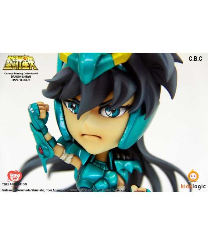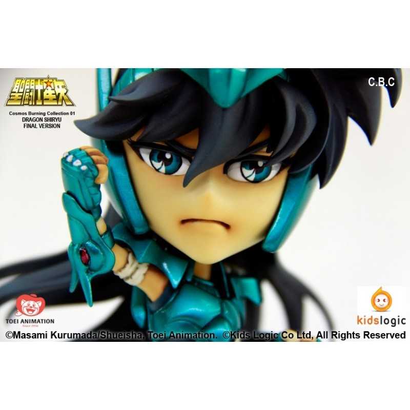 Statuette Saint Seiya sous licence officielle, tirée de la série "CBC" (Cosmos Burning Collection), représentant Shiryu, le chevalier de bronze du Dragon, dans son armure de type V3.