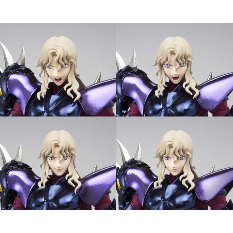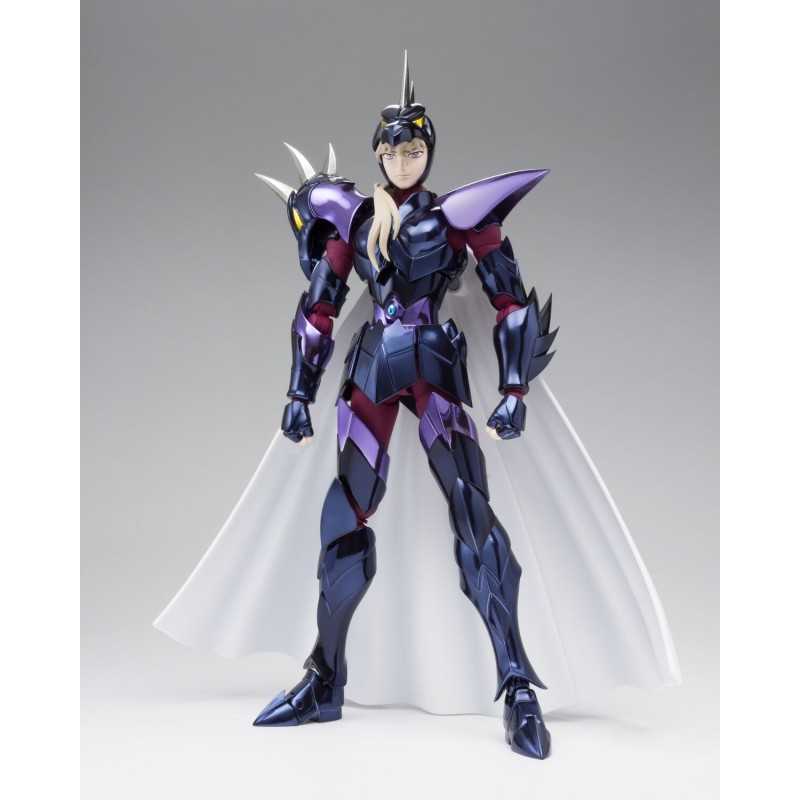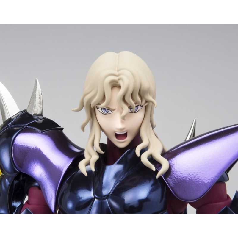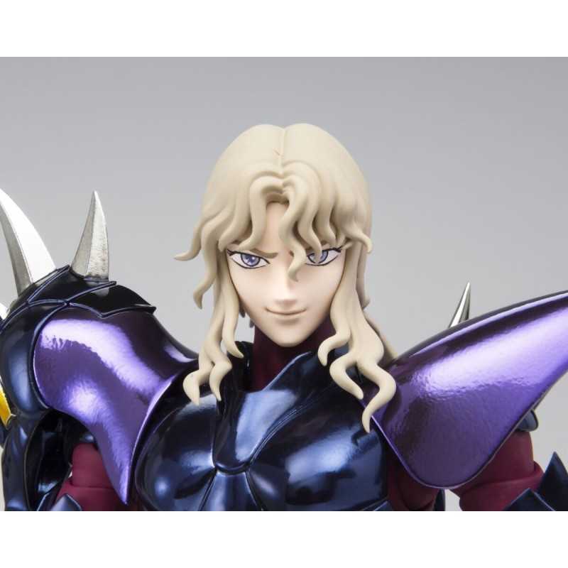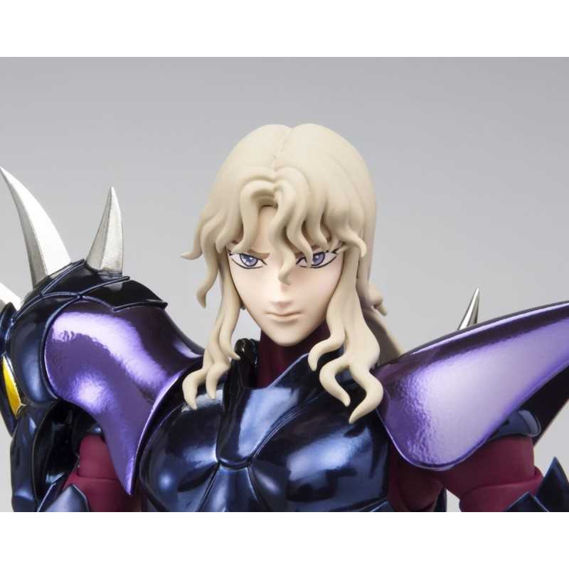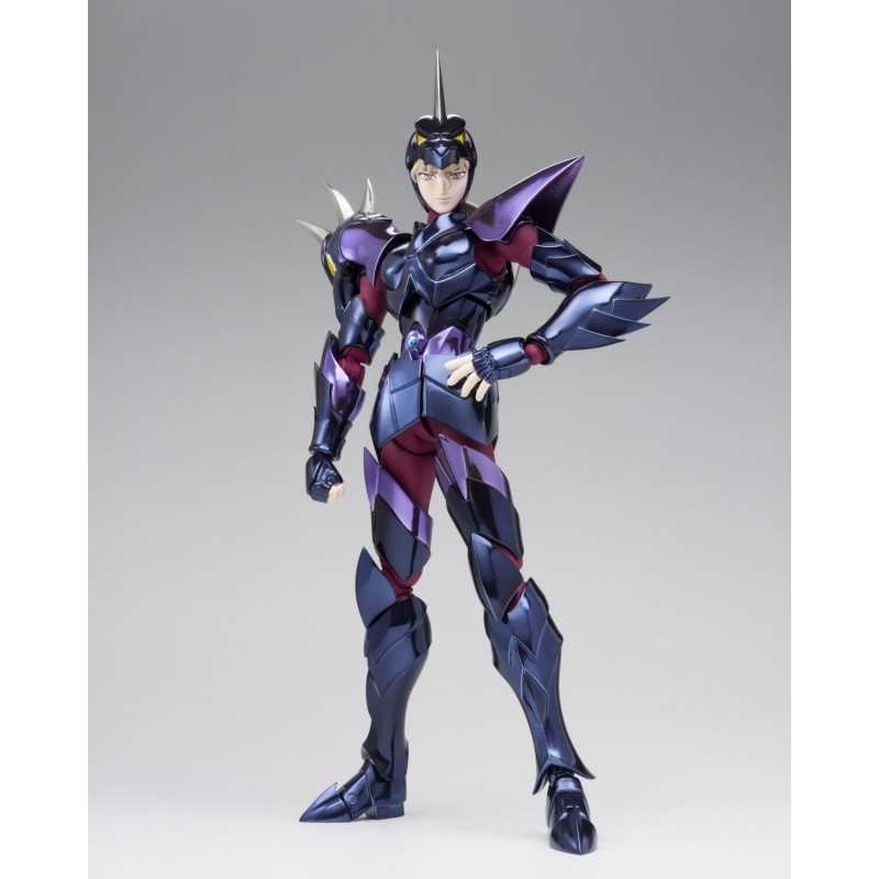 Figurine sous licence Saint Seiya de type Myth Cloth EX, avec corps en plastique totalement articulé et armure en très grande partie en métal, adaptable sur le porte armure (aussi appelé "Object" ou "Socle"), livré avec la figurine.