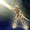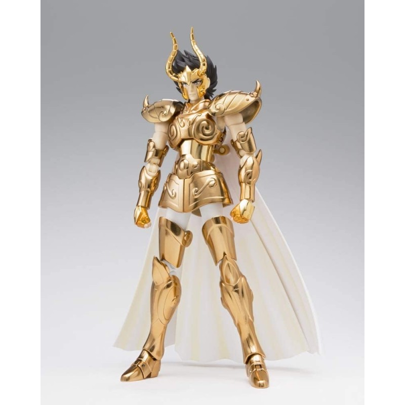 Figurine sous licence Saint Seiya de type Myth Cloth EX, avec corps en plastique totalement articulé et armure en très grande partie en métal, adaptable sur le porte armure (aussi appelé "Object" ou "Socle"), livré avec la figurine.