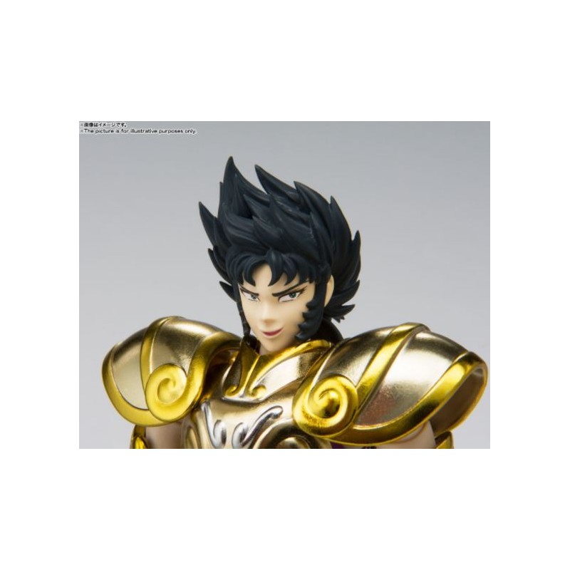 Figurine sous licence Saint Seiya de type Myth Cloth EX, avec corps en plastique totalement articulé et armure en très grande partie en métal, adaptable sur le porte armure (aussi appelé "Object" ou "Socle"), livré avec la figurine.