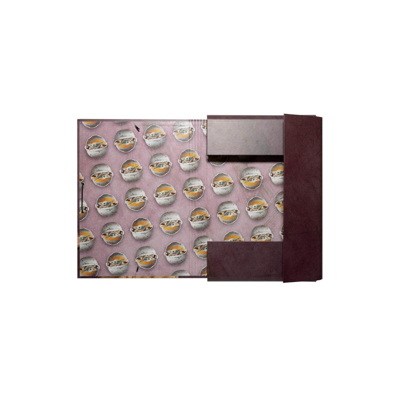 Chemise de rangement dotée de rabats élastiques, d'une couverture en carton de 2 mm d'épaisseur et de rabats internes flexibles.