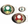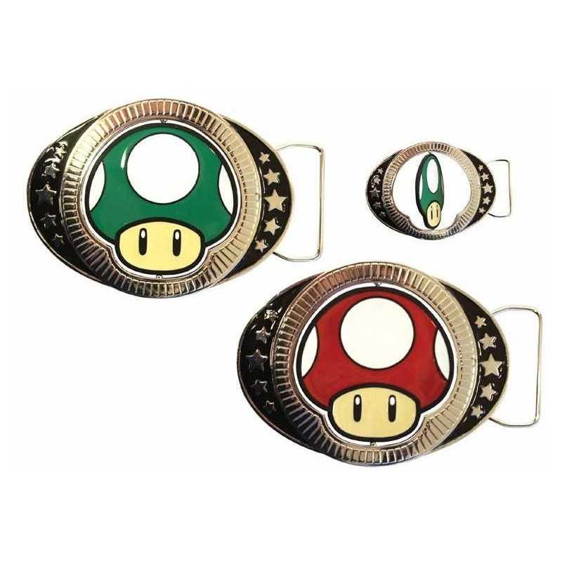 Boucle de ceinture officielle réversible sous licence Super Mario, représentant un Champignon Vert ou Rouge.